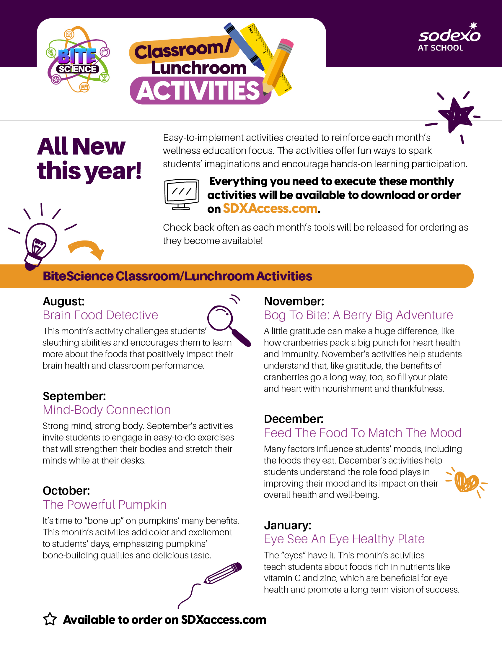 Intended to create excitement and trial of new flavor profiles for students. OPTIONAL for elementary.
