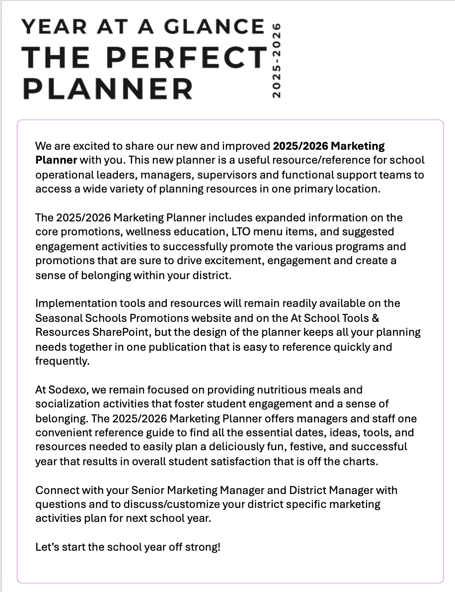 Welcome to our 2025/2026 promotions site, featuring an exciting lineup of materials to support your printed promotions kit. This site features wellness education, scratch-made LTO menu items and engagement activities designed to inform and inspire students to achieve their academic goals while building healthy habits that will last a lifetime.